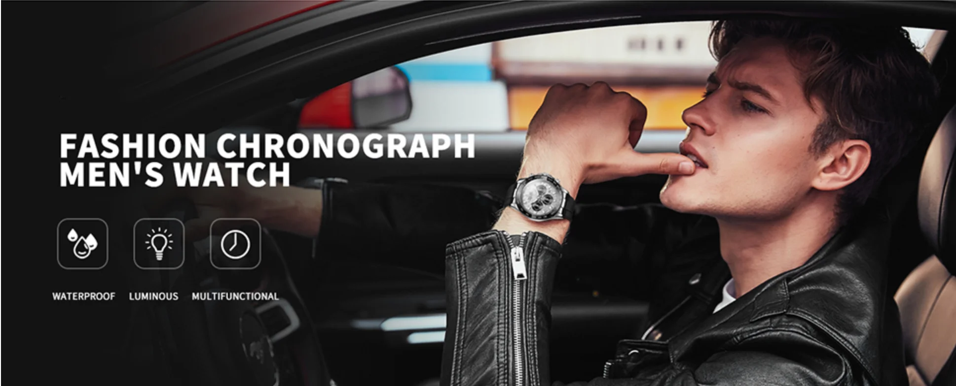 - Also, coupled with three functional subdials and a date display, this black watch is pratical for daily timekeeping and seconds measurement.