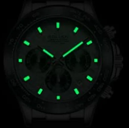 Upon absorbing ample light energy, the watch emits a subtle glow in the dark.